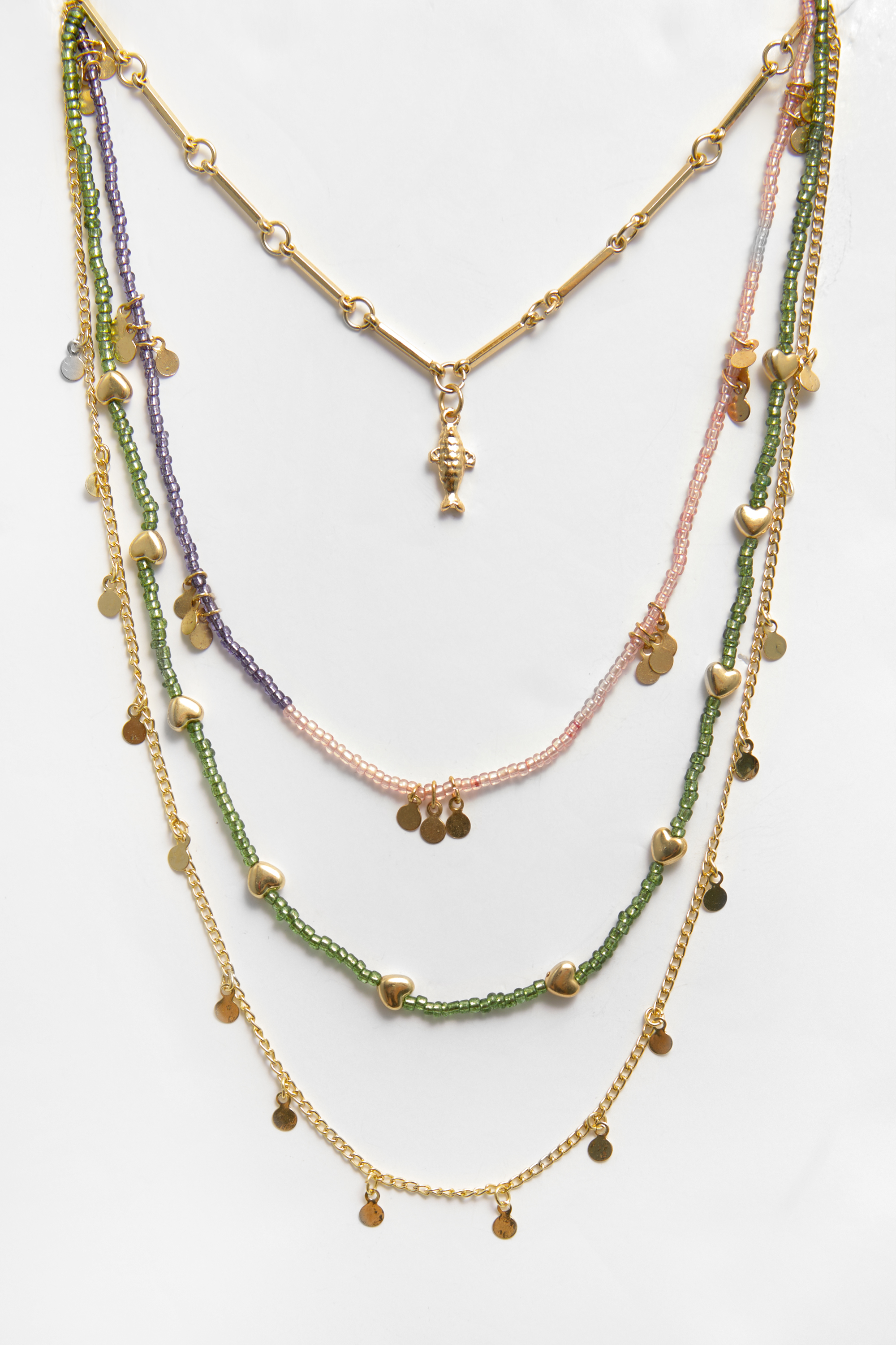 Indossa le tue collane di bigiotteria in qualsiasi periodo dell’anno: in estate e in primavera potrai abbellire le scollature di magliette, vestiti e salopette, mentre in autunno e in inverno potrai indossarle su maglie fini e come ciliegina sulla torta sui capi in tinta unita.Se stai cercando il tuo ciondolo ideale, sei nel posto giusto. Scegli il tuo preferito nella collezione online di Pull&Bear. " vedi di più Vedi di meno