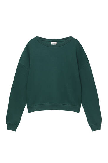 Μονόχρωμο φούτερ με στρογγυλή λαιμόκοψη