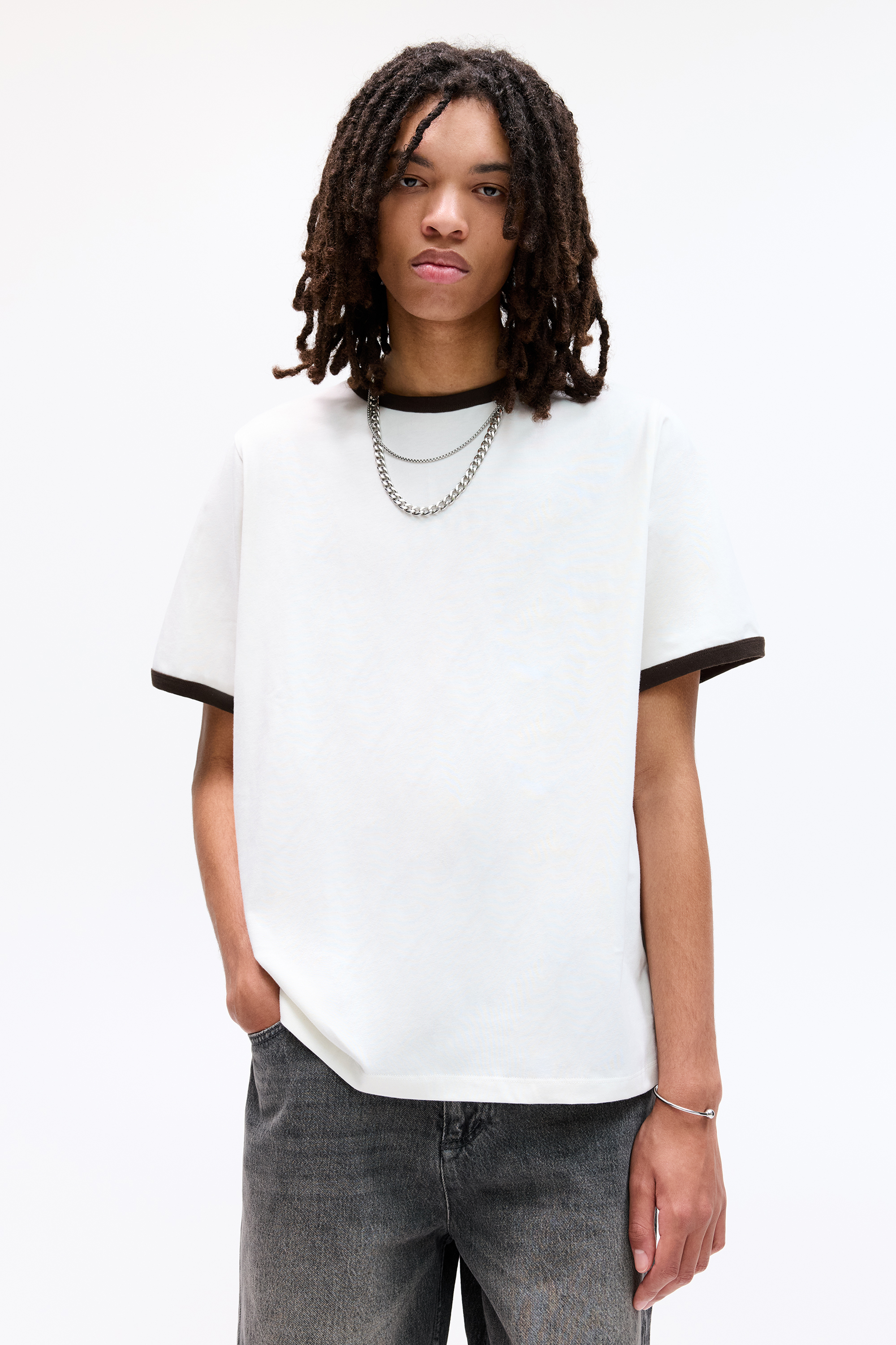 T-shirt dat al zo vele jaren meegaat. Het is echter misschien tijd om te accepteren dat het niet meer in de beste staat is en dat er andere ontwerpen zijn die je zullen helpen je verlies te boven te komen en tegelijkertijd de opties in je garderobe te vermenigvuldigen. Ben jij iemand die van fitted heren-T-shirts houdt? In de Pull&Bear-collectie vind je allerlei ontwerpen die zijn afgestemd op jouw voorkeuren, in lange mouw en korte mouw. Effen of bedrukt, T-shirts of polo's. Als je meer van oversized heren-T-shirts houdt, in lijn met de meer urban stijlen, heb je naast ontwerpen met mouwen ook veststijlen. Als je fan bent van tv-series en films van een paar jaar geleden, dan zijn die vrijwel zeker te vinden in de Pull&Bear heren-T-shirtcollectie, aangezien enkele van de meest populaire en meest succesvolle producties zijn verzameld. Nineties nostalgie is hier in alle ernst en heeft ook zijn stempel gedrukt op de mode. Je zult je als een kind voelen als je je die personages herinnert die je definieerden toen je klein was. Dit seizoen zul je vrienden worden met logo-T-shirts. Niet alleen logo's van nu, maar vintage merkidentiteiten die nu teruggebracht zijn als eerbetoon aan de successen van weleer. Heren-T-shirts bieden ook de perfecte manier om onszelf uit te drukken, en daarom zijn slogan-T-shirts nu zo in. Typografische details die niet alleen een prachtig ontwerp creëren, maar ons ook een identiteit geven en aankondigen wat we denken. Verwijzingen naar steden en idyllische en hemelse plaatsen zijn ook dit seizoen een terugkerend motief. Misschien omdat ze ons meenemen naar plaatsen die we willen bezoeken, maar voorlopig zijn we tevreden met het dragen ervan op onze borst. Als je een kunstliefhebber bent, vind je eerbetonen aan enkele van de meest beroemde werken van de meest charismatische kunstenaars in de geschiedenis. Moderne klassiekers die van het doek naar je T-shirt zijn gegaan. In deze sectie vind je ook basic T-shirts voor alle smaken. Een breed scala aan kleuren om te coördineren met je garderobe, allerlei soorten fits en designs, zodat je degene kunt kiezen die het beste bij je past, met details die in staat zijn om van een basic een van de juwelen in de kroon van je garderobe te maken. Ze kunnen worden gecombineerd met elke denkbare outfit, dus laat het seizoen niet voorbijgaan zonder een goed arsenaal aan basics samen te stellen. Vergeet niet dat je hier de meest modieuze