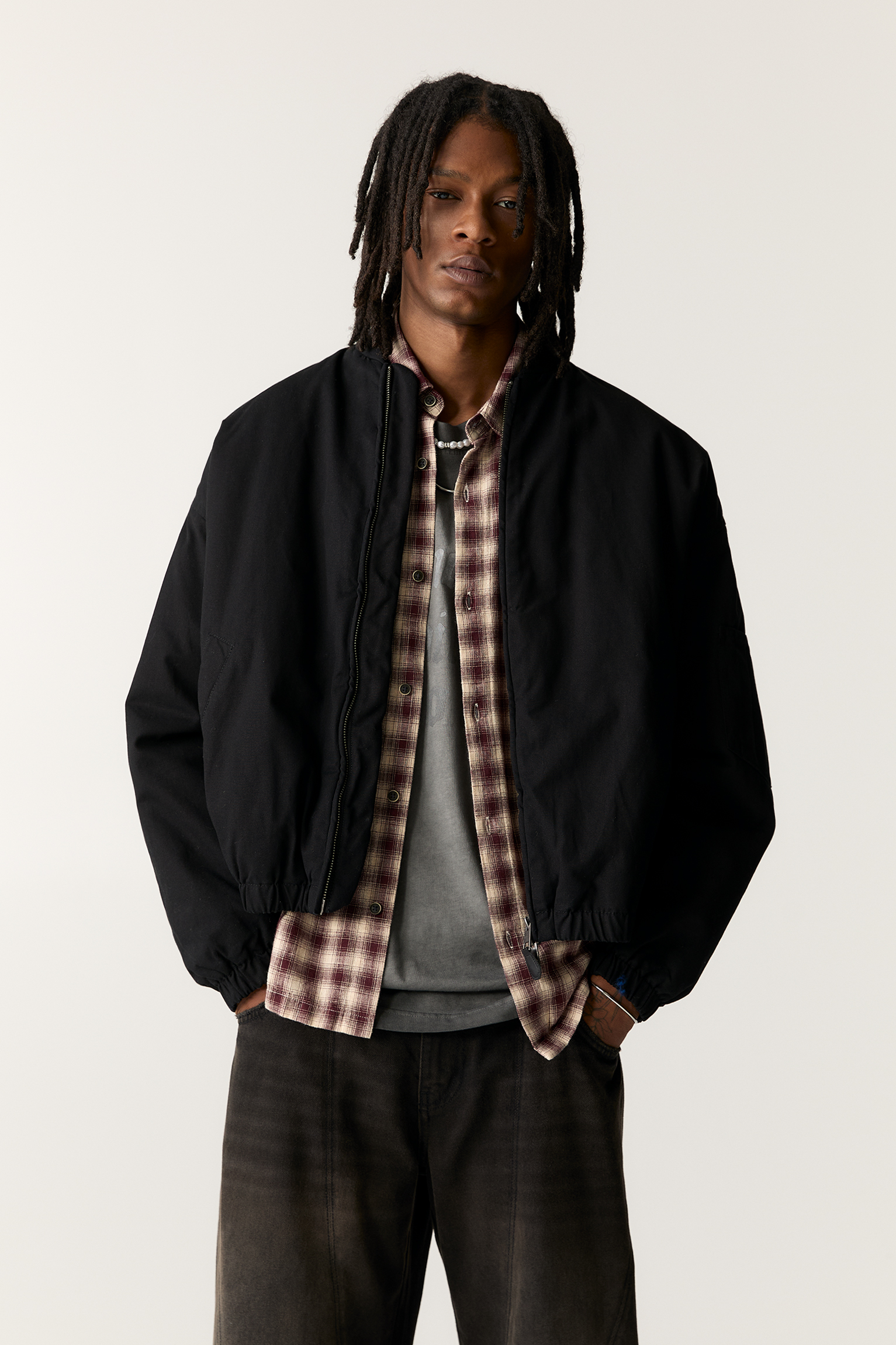 erkek ceket türleri.Bomber veya pilot ceketi: bu kısa, dayanıklı ceket, ön kısmında fermuar, elastik bel ve manşetlere sahiptir,